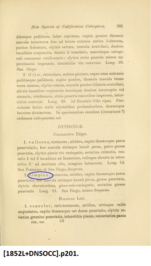 LeConte J.L. 1851-1852: Descriptions of new species of Coleoptera, from California. Annals of the Lyceum of Natural History of New York 5: 125-216. [Pp. 125-184, 1851; pp. 185-216, 1852.]