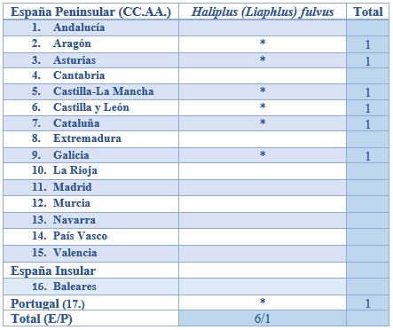 Tabla (Haliplus (Liaphlus) fulvus): https://dili-up.com/wp-content/uploads/2020/05/Tabla-Distribución-Taxón-Fabricius-1801.jpg