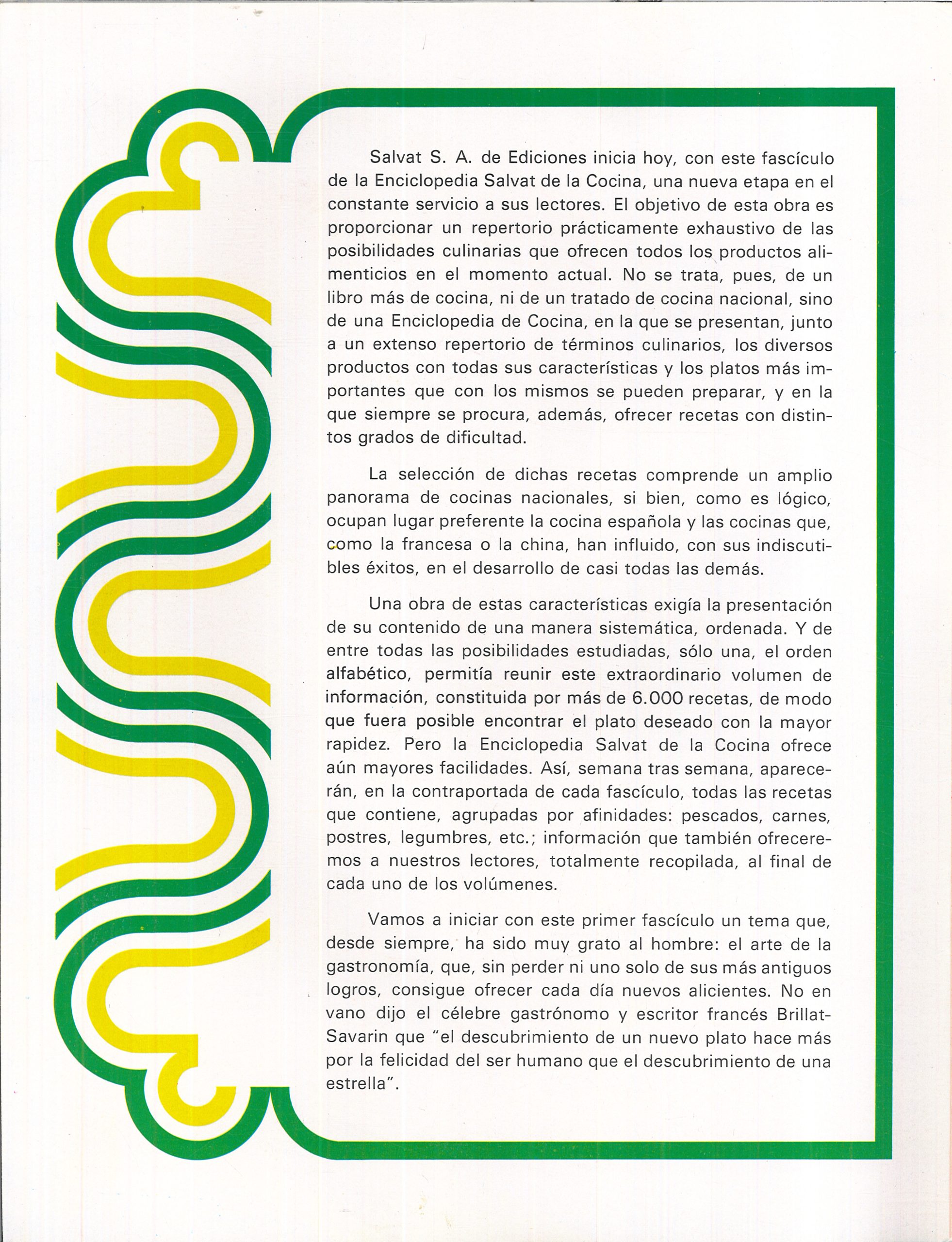 Sin duda alguna, creemos que esta primera galería llena de imágenes con mucha diversidad gastronómica y culinaria podrá contribuir a que siempre recordemos la ingente labor cultural que SALVAT ha hecho en España y en otros países del mundo y a no destruir con tanto desprecio esta excelente fuente de información documental, con tanto valor patrimonial.